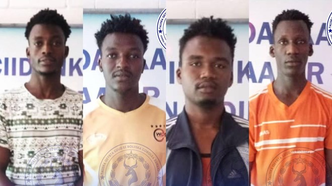 Afartaan dhalinyarada ah ayaa xabsiga la dhigay, waxaana magacyadooda lagu kala sheegay Cumar Ciise Salaad, Mahad Cumar Yirid, Amin Maxamed Xasan iyo Cabdisalaan Ceenaanshe Ibraahim.