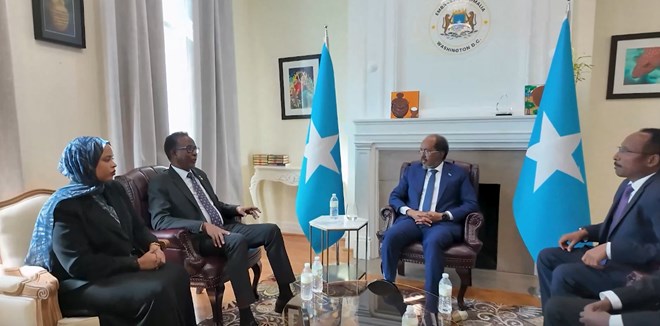 Madaxweynaha Soomaaliya oo Booqday Safaaradda Soomaaliya ee Mareykanka