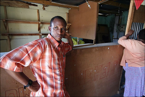 Hadith Haji Adam Osman, 26, a Somali shopkeeper, ponders the remains of his shop, gutted by an anti-Somali mob. (Photos By Craig Timberg -- The Washington Post)