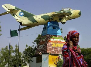![]() Hargeisa a Russian MiG fighter of the old Somali air force stands as a monument to the atrocities Somalilanders suffered during the Siad Barre era. Somaliland has struggled to maintain peace and nurture democracy in a volatile region. © 2003 Getty Images