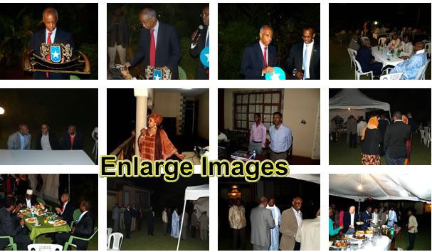 Nairobi (HOL) - Somali Ambassador to Kenya Mohamed Ali Nur (America) hosted a private farewell dinner in his home in honour of the outgoing UN Special Representative for the Secretary General for Somalia, Ahmedou Ould-Abdallah on Saturday night. The dinner party was attended by the TFG Foreign Minister, Ali Jangali; Margaret Vogt, Deputy UN Special Representative for the Secretary General for Somalia; Joseph Trimble, Political Officer US Embassy in Nairobi; Bruno Mpondo-Epo, Acting Chief of Staff for UNPOS; as well as prominent Somali businessmen, and several employee’s of UNPOS.