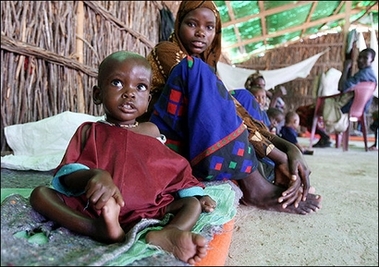 A malnourished Somali boy sits with his mother at a therapeutic feeding center in Wajid, 07 December 2006. While adults have lost property, animals and in some cases their lives, it is the children of Somalia, which is swimming in a sea of grim health statistics already, that are suffering the most after the recent floods.(AFP/Pool/File/Stephen Morrison) |