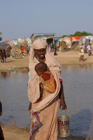 | Photo: A woman with a child at the Dr. Hawa Abdi refugee camp, Somalia (Daria Solovieva) |