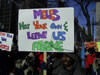 Waving signs that read "Stop Bush's war on terror," "U.S. stop proxy war" and "Troops out of Somalia now," the peaceful crowd listened to speakers decrying recent U.S. air strikes that missed their Al Qaeda targets but killed 70 nomadic herdsmen, according to British aid agency Oxfam.