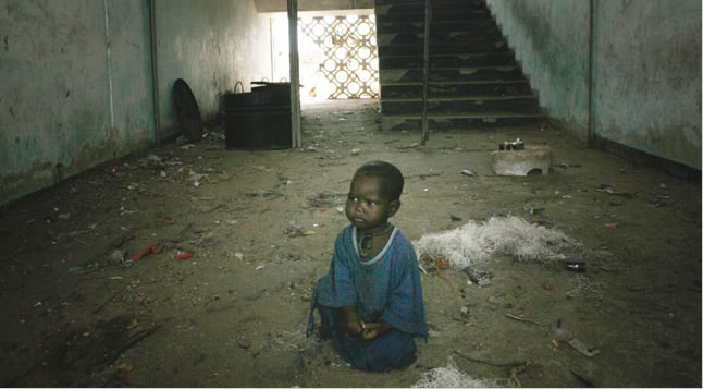 A child in a building abandoned in March amid fighting by Somali forces and militants in Mogadishu.