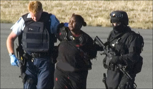After the plane landed in Christchurch, the alleged hijacker asked the pilots to open an emergency door, which they refused to do.