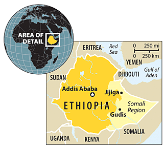 Jijiga, Ethiopia - Spotting a plume of dust from an approaching vehicle, residents of Gudis village ran to tell their neighbors to hide. Then someone saw the flag on the white Land Cruiser; international aid workers were coming. "We thought you were the military," said one man to an aid worker who later recounted the story.