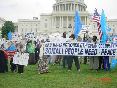 Washington (HOL) – Hundreds of protesters and activists of Somali-descent across the nation had flocked Thursday to Washington for a hot and high temperature day of rally and lobbying to push their representatives in the Senate and Congress of more than three dozens for an action, aiming an ends for the 18-months long Ethiopian occupation in their country as that sits the center of their campaign throughout the year.