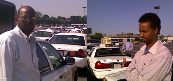 Elmi Muhyadin and Abdirahman Abbib in the taxi pool at Logan Airport, Boston