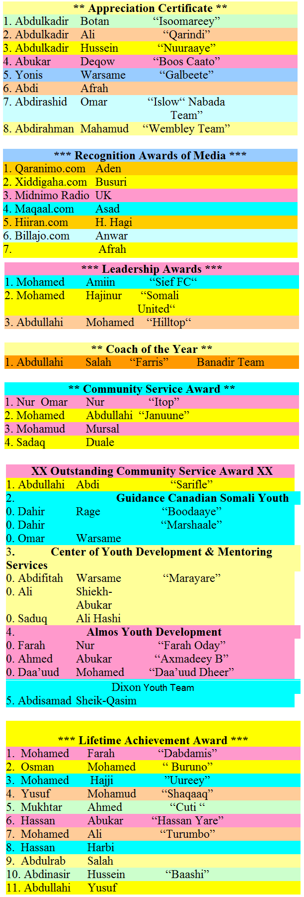 Waxaa ka soo qeybgalay Rugcadaayadiii ciyaaraha iyo dhalinyarada hadda ciyaarata iyo waliba qabqaabiyaasha ciyaaraha xagaaga. Xafladaa oo si wacaagsan loo agaasimay, Waxaa aayado quraan ah ka akhriyey Gacal, Gudoomiyaha Sosca oo mahadceliyey dadkii xaflada ka soo qeybgalay.