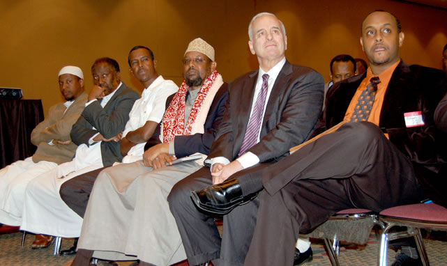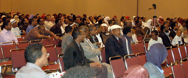 Minneapolis, MN (HOL) - Hoping to restore the image of Somali-Americans and set the record straight, hundreds of people gathered at the Minneapolis Convention Center Saturday where more than 20 local organizations co-hosted an event seeking to demystify the Somali community. Representatives from the Somali community attempted to highlight their Somali-American identity, and shared their successes and struggles in Minnesota. Speakers expressed frustration at the raids on money-wiring businesses, intimidation by law enforcement agents, and reports on the Somali community by local media. Political leaders and community organizers expressed solidarity with their Somali-American neighbors.