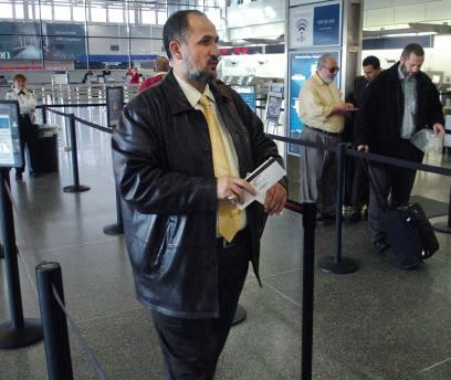 ![]() At Minneapolis/St. Paul International Airport on Nov. 26, 2006, Omar Shahin , left, president of the North American Imams Federation goes through security as a group of 6 Muslim scholars prepared to fly back to Phoenix, AZ . Attempting to return to Phoenix, AZ, after attending a conference in Minneapolis, the group was removed from a US Airways flight and questioned by police several hours before being released Monday evening. The group was going to fly standby on Northwest. (Pioneer Press) |