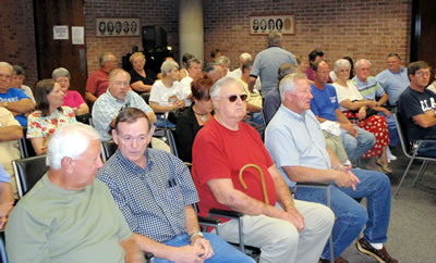Frizzell adds that Muslims from outside Mayfield have expressed interest in worshiping at the mosque, likely increasing the number of attendees. Other concerns include no traffic controls or crossing sections in front of the building. A man who lives a few blocks away says the sound of the call to prayer early in the morning and late at night might violate city ordinance. Board member Don Costello asks to question the petitioner, but he's not in the council chambers. After a moment of confusion, the Graves County Sheriff talks privately with Costello.
