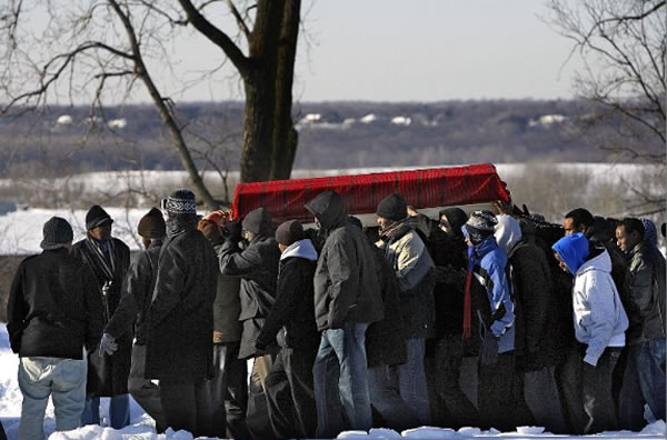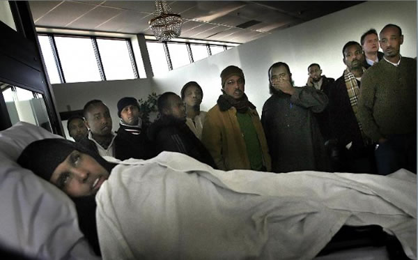 Members of the East African community carried the body of one of the three victims killed at the Seward Market earlier in the week to a gravesite at the Garden of Eden Memorial Gardens Islamic Cemetery in Burnsville. All three victims were buried during the ceremony.