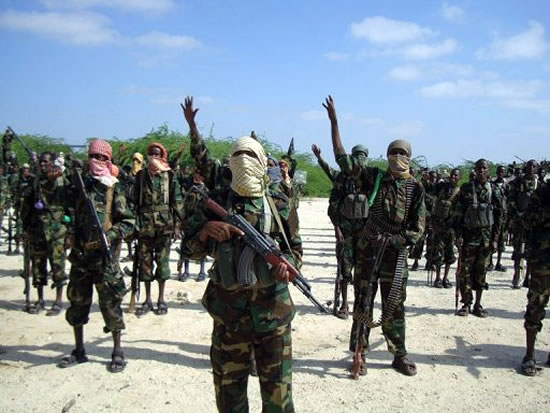 Somali Islamist fighters stand during a military exercise in Mogadishu