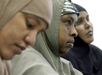 ![]() Somali refugees (left to right) Raani Gedow, Sadiyo Giire and Amina Jama listen as Mohamed Ismail teaches an English class Wednesday morning at the Somali Community Center in Grand Forks. (Sarah Kolberg, staff photographer) |