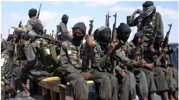 ![]() This 2008 file photo shows armed fighters from Somalia's Al-Shabab jihadist movement traveling on the back of pickup trucks outside Mogadishu. AP |