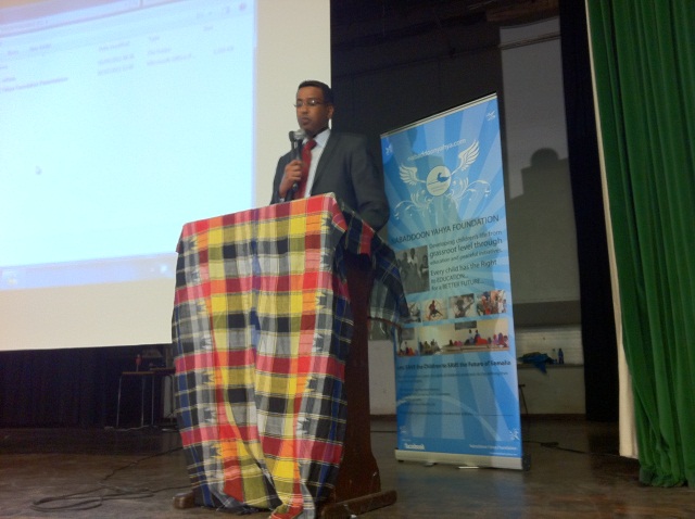 Jabril Ibrahim Abdulle who is the head of Centre for Research and Dialogue – Somalia (CRD), was key note speaker; he spoke passionately about the future Somalia and the indispensible role of Youth. “Youth accounts a sizable proportion of the Somalia population, 68% Somalis are under the age of 29 years old. Youth and children are trapped in a vicious cycle of violence, fear and poverty generated by armed conflicts which unfortunately eroded their potential for contributing to the country’s rebuilding” Jabril presented a powerful presentation on the possible role of Somali youth Diaspora in helping educate children in Somalia. “…. recent phenomena of social networking, surely, Somali youth can galvanize Somalis in the diaspora to support education projects and peacebuilding among children in Somalia.” Jabril has given the audience an insight of the struggle and suffering that young children go through everyday life in Somali.