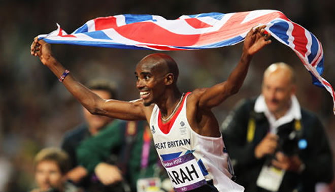 Somali-born Mo Farah celebrates winning the Olympic 10,000 metres in London, the city he grew up in from the age of eight. Photograph: Jason O'Brien/Action Images