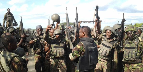 Kenya Defence Forces(KDF) troops at Afmadow Airstrip after capturing the key Al Shabaab logistical base. There was no casualties among KDF and its friendly forces the Somali National Army and Ras Kamboni Brigade. Photo/FILE NATION MEDIA GROUP