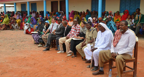 Hundreds of people including dignitaries from the Puntland authorities, UN and NRC were today gathered for the official handover ceremony of permanent houses to 250 formerly displaced families. Photo: NRC/Astrid Sehl