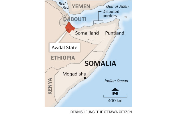 After the fall of Somali dictator Siad Barre in 1991, Somaliland — a former British protectorate in the north — declared independence from the rest of Somalia. It has a functioning, relatively stable government and over the years it has known far more peace, if not prosperity, than its neighbours to the south. But in recent years tensions within the state have increased and separation movements have grown. Awdal region is on its western flank, along the border with Djibouti and Ethiopia. To the east of central Somaliland is Khatuumo region, which is itself deeply unhappy with the government of Somaliland and whose leaders have taken up arms to make their point. Clan politics are pivotal throughout — the majority of Awdalites are from the Gadabursi clan, while the Isaaq dominate the central region. Many Somali-Canadians in Ottawa are of Gadabursi origin.