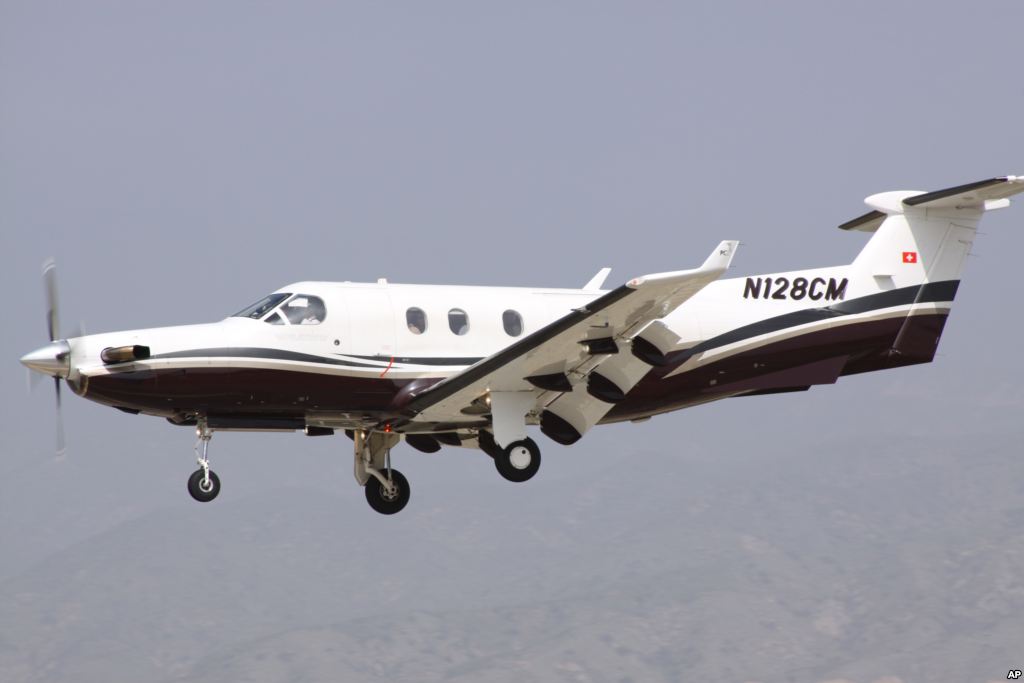 A single-engine turboprop PC-12, the type of plane that the U.S. military is reportedly using to record video, track infrared heat patterns, and catch radio and cellphone signals in Africa.