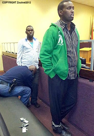 Convicted murderer Agolle Abdi Jimaale (34) is cuffed after being sentenced in the Limpopo High Court in Thohoyandou on Tuesday. Also in the picture is Mohamad Muqtaar (29) who was sentenced to 25 years' imprisonment.