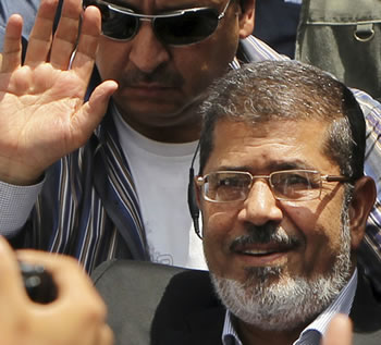 ![]() Muslim Brotherhood's presidential candidate Mohamed Morsy waves to his supporters after Friday prayers in Cairo in this June 22, 2012 file photo. |