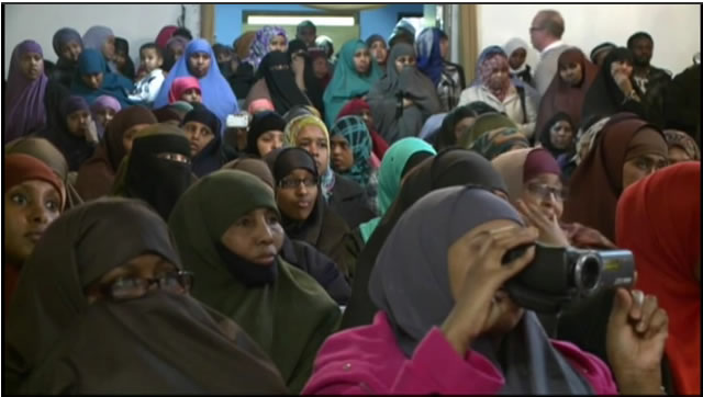 Hundreds of Somalis gathered at an Islamic Center in Minneapolis Saturday and urged lawmakers and American banks to help find a solution to the ongoing funds-transfer crisis."It's a human rights issue and it's a humanitarian issue," said Abdirahman Muse, who helped to organize Saturday's event. "The lives of 10 million people back in Somalia are on the line."