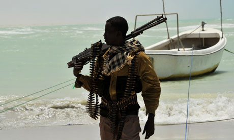 A Somali connected to the milita and pirates carries his high-calibre weapon on a beach in the central Somali town of Hobyo. Photograph: Roberto Schmidt/AFP/Getty Images