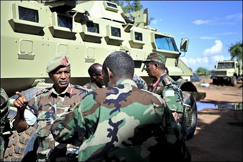 MOGADISHU, Somalia -- The Ugandan contingent of AMISOM prepares to advance towards Baidoa along with the Somali National Army at the recently captured Ballidoogole Airbase in sector one. AU-UN IST PHOTO / TOBIN JONES.