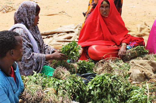 Women sell bundles of qat at a market in Mogadishu. The thriving qat trade is a permanent fixture in Mogadishu's markets. [Mohamed Abdiwahab/AFP]