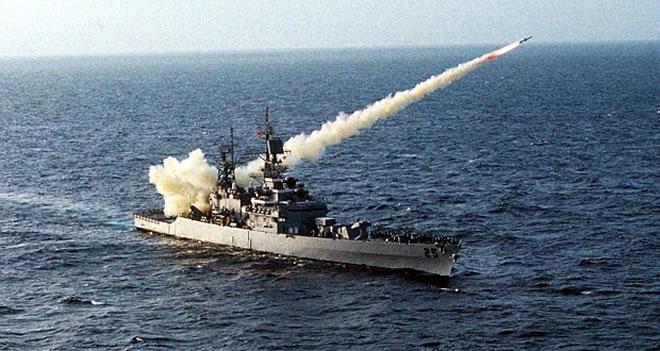 The warship fired ten rounds of shells at the coastal town on Monday, apparently after being provoked by an al-Shabab gunboat. No one was injured.