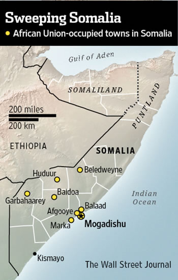 Instead, he said, strategists are still determining how to allow a civilian exodus from the town of 180,000 without giving al Shabaab an opening to escape. Also, he said, the medley of African nations that sent troops to staff the effort brought in radios that don't tune into one another, and spare parts that don't match the military vehicles that need them. "Normally these things are worked out ahead of mission," Col. Houmed said.