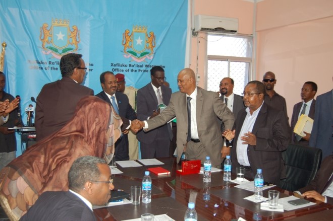 “Taking advantage from this opportunity, I would like to advice our new prime minister, my brother Abdi Weli Sheik Ahmed to develop a very close cooperation with other governmental institutions” noted former Somali PM Abdi Farah Shirdon.