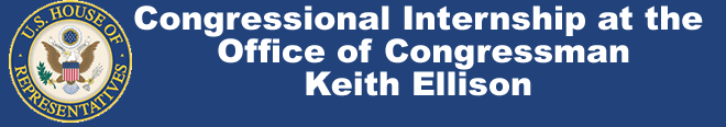 Congressman Keith Ellison works to promote politics of inclusion and generosity within the 5th Congressional District of Minnesota; which includes the city of Minneapolis and all or part of 15 surrounding suburbs. Internships are offered for individuals interested in learning the operations of a Congressional office, current events as they relate to Congressional activity, federal legislation and legislative issues, constituent services, and events research and planning. Interns will have the opportunity to see the direct connections of policies made on the federal level and the people affected by them through constituent outreach and advocacy.