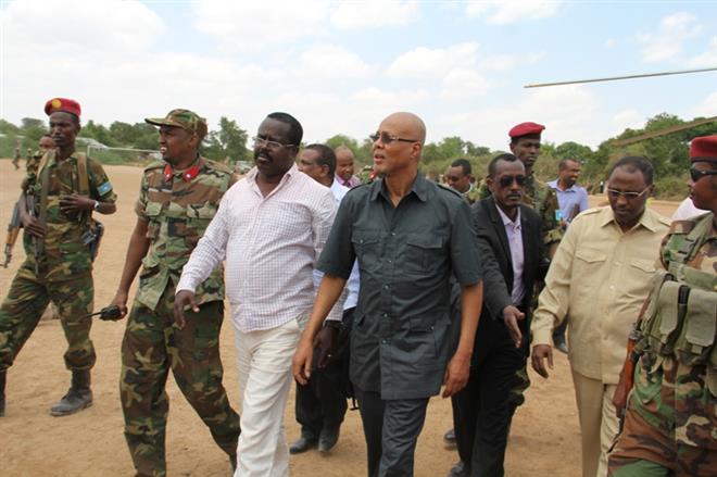 Prime Minister Abdiweli Sheikh Ahmed was accompanied by key cabinet members including internal security minister Abdi Karim Hussein Guled, Djibouti’s abmassador to Somalia Dayib Dubad Rooble and top Somali National Amry officials.