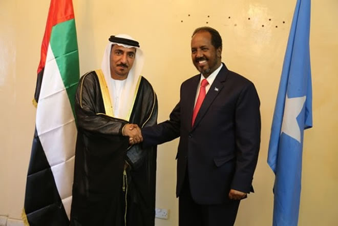 Mogadishu, Somalia (HOL) - The president of the federal republic of Somalia Hassan Sheikh Mahamoud has received credential letters from the United Arab Emirates ambassador to Somalia during a high profile meeting at the presidential palace here in Mogadishu on Sunday.