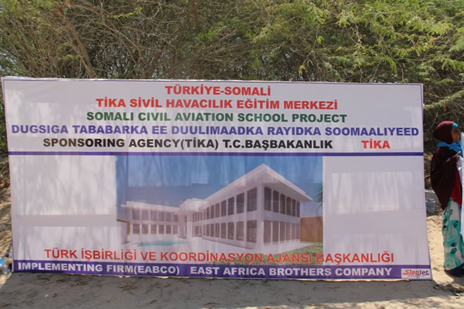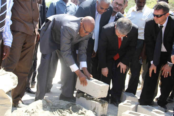 Mogadishu - The Prime Minister of the Federal Government of Somalia His Excellency Abdiweli Sheikh Ahmed, accompanied by the Minister of Air and Land Transport and his deputy, the Minister of Finance, the Turkish Ambassador and the General Manager of Aden Adde International Airport, laid the foundation stone for the building of the Aviation Training Academy at Aden Adde International Airport.