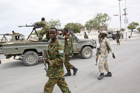 Government soldiers on patrol in Somalia’s capital, Mogadishu, in May. Associated Press