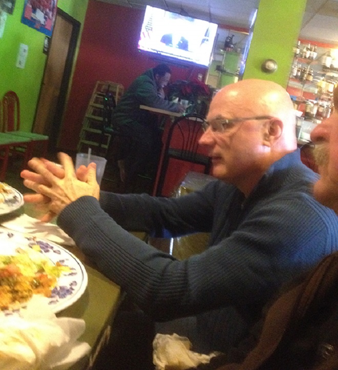 Having lunch at an Ethiopian restaurant was the vehicle for our conversation and another learning experience to boot. You order these plates of food which comes on a spongy bread. Sit on your left hand, because I’m left-handed, and only eat with your right hand. No, really, eat only with your right hand. No utensils, just tear off some bread, wrap it around some goodness and eat. A nice way to eat and it is delicious