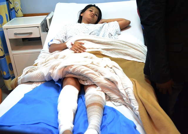 A victim of a bomb attack lies injured in a hospital on July 8, 2014 in Arusha, northern Tanzania, after a bomb wounded eight people late the night before