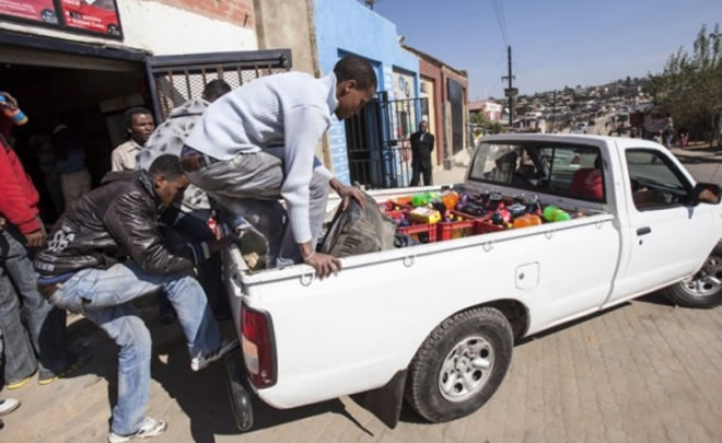 FILE PICTURE: Foreign shop owners load their stock onto a bakkie on May 27, 2013 in Johannesburg, South Africa. Foreign shop owners are leaving Diepsloot following violence that erupted after a Somali shopkeeper shot dead two Zimbabwean outside his shop. (Photo by Gallo Images / Daniel Born).