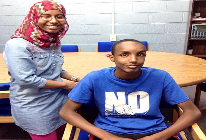 Ilham Mohamed, left, and Abdifatah Alew, right, both Lewiston High School freshmen, are among Lewiston students who passed the English Language Learner program test, which means they're academically fluent in English.