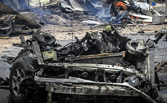 "It was a bomb they planted in a small room in the market that the local government staff used as they collected tax," Ahmed Hassan, the district commissioner of Kaaraan district, told reporters.
