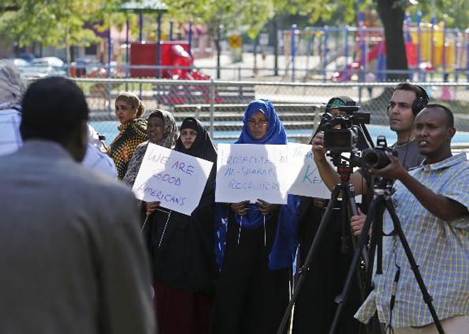 Somali-American women at a 2013 rally in Minneapolis to condemn Al-Shabab’s attack at a shopping mall in Nairobi, Kenya (David Joles Star Tribune).