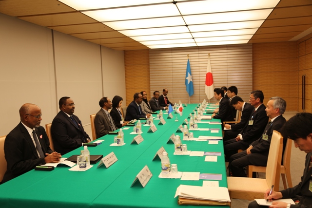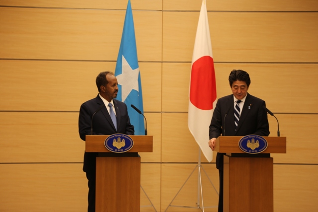 “Since last year Japanese government carried out more projects in Somalia and now-- as Prime Minister Shinzo Abe announced Japan will increase its assistance to Somalia” President Hassan Sheik Mahmoud told the joint press conference asking Japan to help his country in the fields of technology, fisheries and the reconstruction of the country.