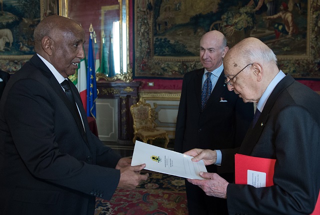He delivered a message of greetings and goodwill from Somali president to Mr. Giorgio Napolitano, the President of Italy.