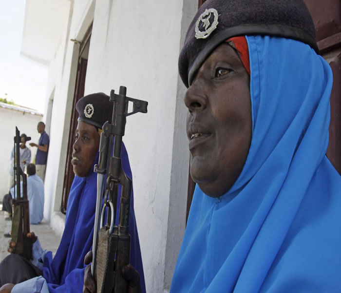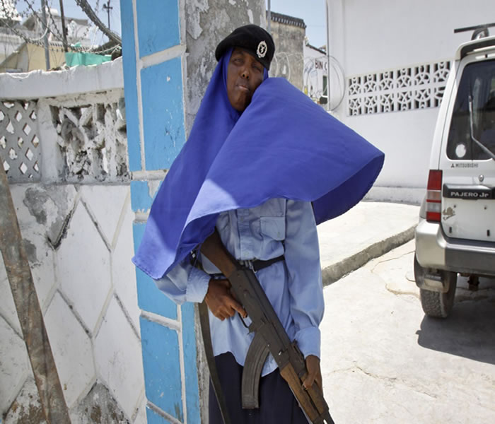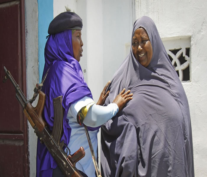 MOGADISHU, Somalia — With an AK47 automatic rifle slung over her shoulder, Naeemo Abdi frisks people coming into a Mogadishu police station.When she holds back a man who tried to enter unchecked, he scowls at her and barks: "Woman and soldier?"